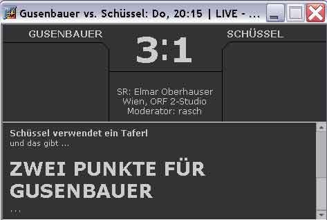 *IMO zu unergiebig. Außerdem ließe ich mich von einem noch so rhetorisch raffinierten Wolfgang Schüssel nicht davon überzeugen, eine christliche Partei zu wählen. Ja, so voreingenommen bin ich ;-)