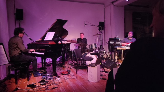 Am Ende jedes Kapitels steht zusammengefasst eine recht heterogene Playlist mit vielen der Stücke, die im Kapitel selbst angesprochen wurden. Der Ansatz des Konzertabends war, ausgewählte Stücke zu covern, in einem Trio aus Klavier (plus Synthorgel), Schlagzeug und Gitarre plus Elektronik. Gemüsegarten: Chic, Sara Vaughan, Schostakowitsch, Andy Bey, James Brown, Steve Reich, Scarlatti, Nusrat Fateh Ali Khan. In einem Zwischendurcherklärbärgespräch meinte Siewert, das Covern wäre nicht unbedingt sein präferierter Zugang gewesen. Ich habe ihn so verstanden, dass er lieber zu den Kapitelkategorien (wie “Repetition”) improvisiert hätte. Es ließe sich darüber trefflich weiter sinnieren, was ich an jenem Abend interessanter gefunden hätte als den Aspekt, dass in Ratliffs Playlisten wenig Musik von Frauen vorkommt — das Gespräch zu diesem von der Moderatorin (Astrid Schwarz) vorgebrachtem Punkt verlief recht lust- und erkenntnislos. Wallfisch sprach so in Richtung “die Musikgeschichte ist halt so”, was einerseits so ist, andererseits aber natürlich auch nicht, und Schwarz dann so “ja, aber Eliane Radigue oder Delia Derbyshire”, und das ist zwar auch so, dann aber wiederum auch nicht, je nun. Es blieb im Anschluss an diese Engführung des Themas keine Möglichkeit mehr für andere Perspektiven, leider.